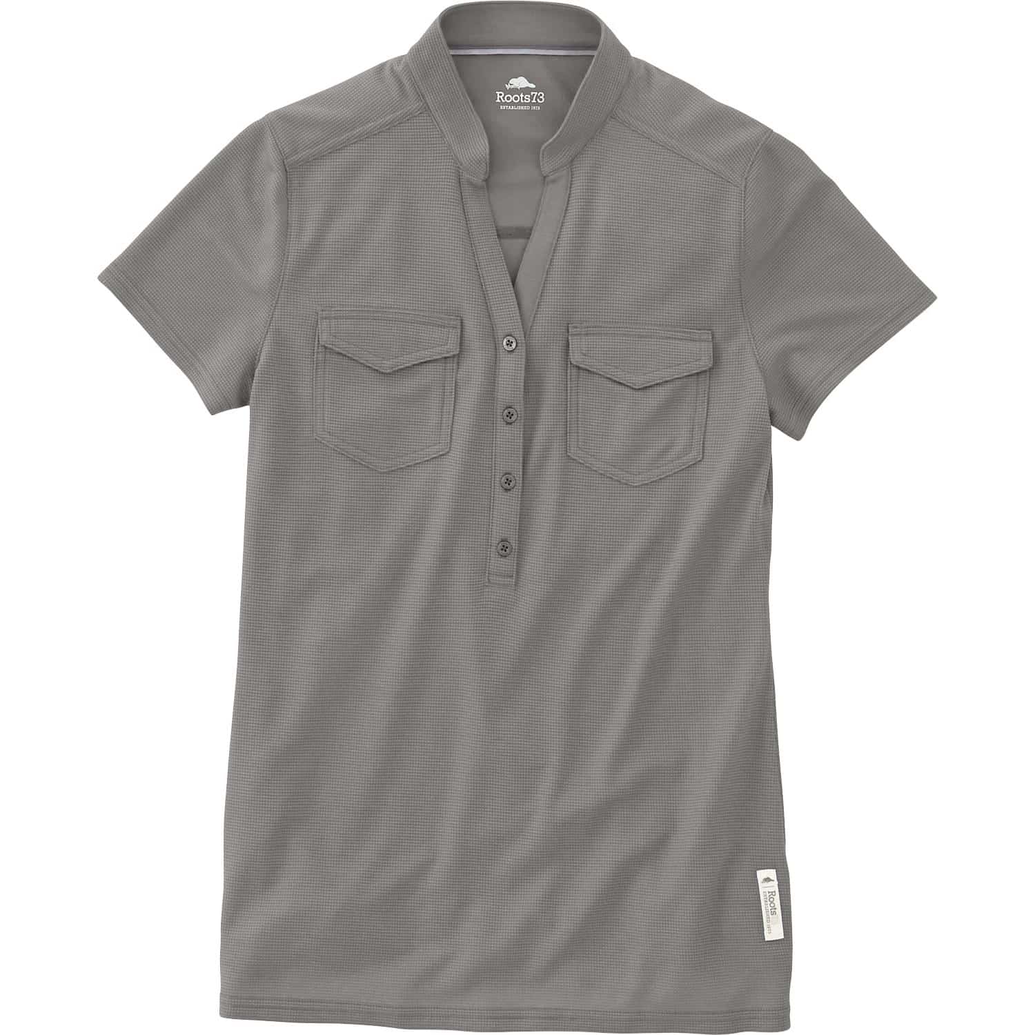 The Lunenburgs got a relaxed yet stylish look. With a dropped back hem, V-notch side slits and Roots73â„¢ branding on the left hip and rear right shoulder, this polo is versatile enough for corporate, university or team apparel.